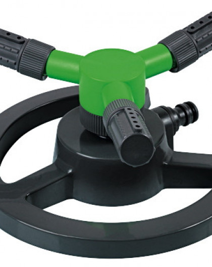 Arroseur rotatif plastique sur base équipé de 3 bras. - Surface arrosée jusqu’à 71 m2 (Ø 9,5 m)(pour 4bars de pression). - Les Bras et buses (30°/360°) de l'Arroseur rotatif sont réglables.
