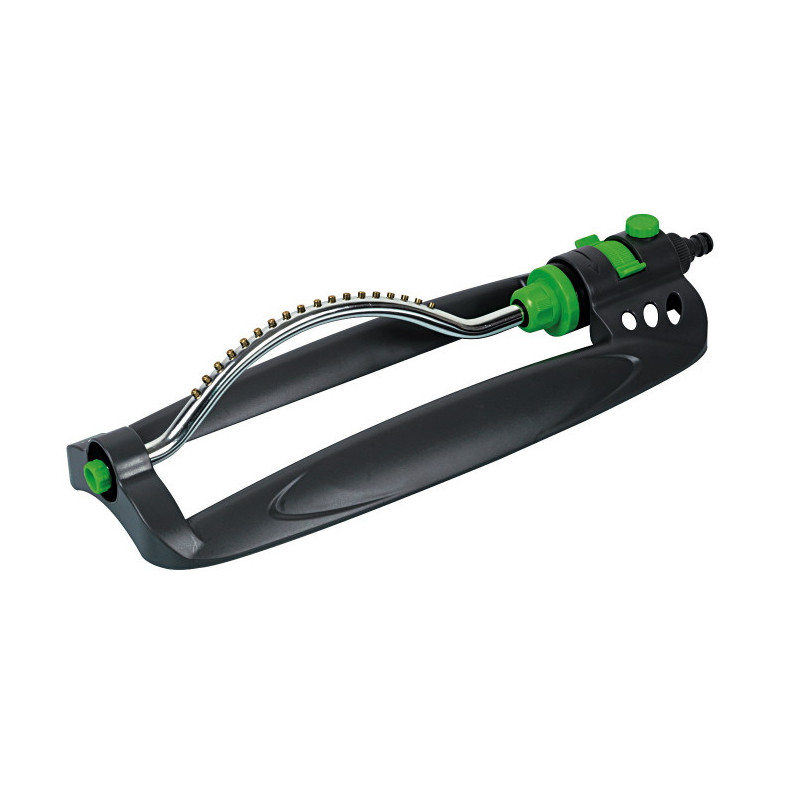 Arroseur oscillant à turbine équipé de 18 buses laiton. - Surface arrosée jusqu’à 288 m2 (15,8 x 18,2 m). - Fonctions réglage du débit et de la surface à arroser.