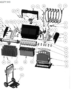 Toutes les pièces détachées pour réparer Le robot électrique Sweepy M3. c'est le robot de compétition à 3 moteurs. Un moteur pour aspirer, l'autre pour avancer, le troisième pour tourner et couvrir une très large surface de piscine.