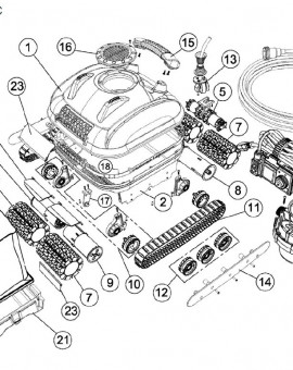 Toutes les pièces détachées pour réparer le Robot de piscine Protrac QC adapté à toutes les piscines jusqu'à 12X 6m. Il nettoie et décrasse le fond et les parois jusqu'à la ligne d'eau.