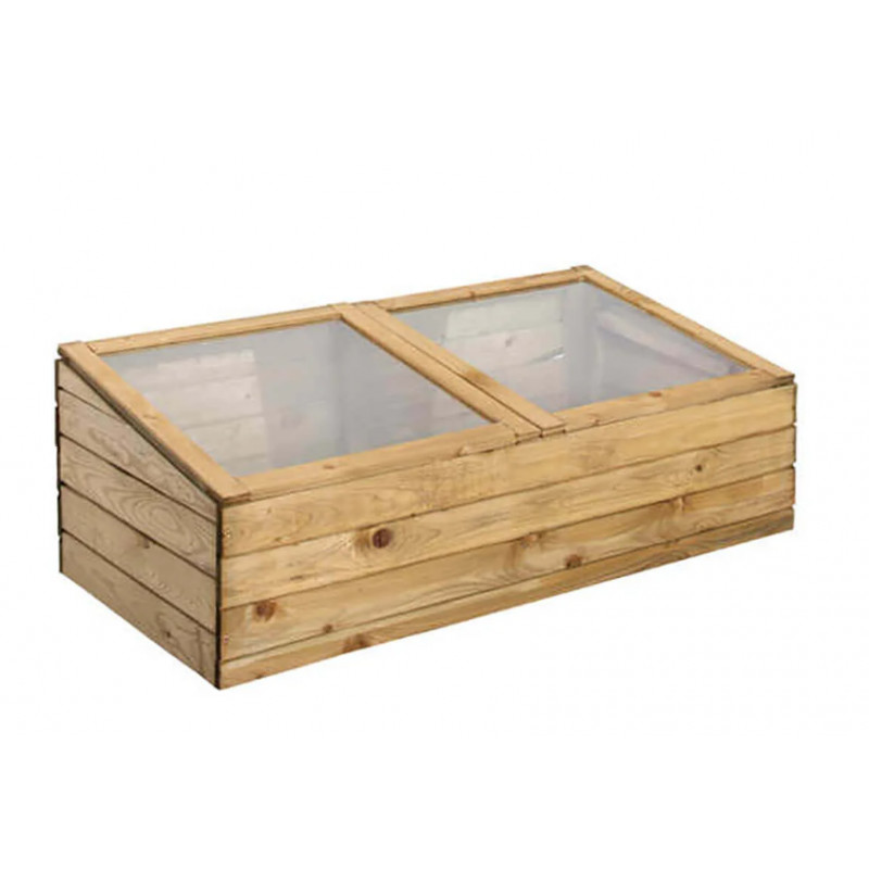 La serre en bois double contient un grand compartiment avec deux ouvertures pour protéger vos végétaux.