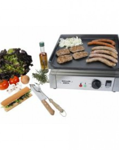 Plaque de cuisson fonte pour une cuisson parfaitement homogène sur toute la plaque. Une cuisson saine car la plaque de cuisson est légèrement inclinée pour la récupération des graisses dans le ramasse-jus amovible. La surface de cuisson de bonne dimension permet de cuire, en grande quantité, différents aliments sans perte de chaleur en périphérie : steaks, poissons, gambas, moules, légumes, omelettes…