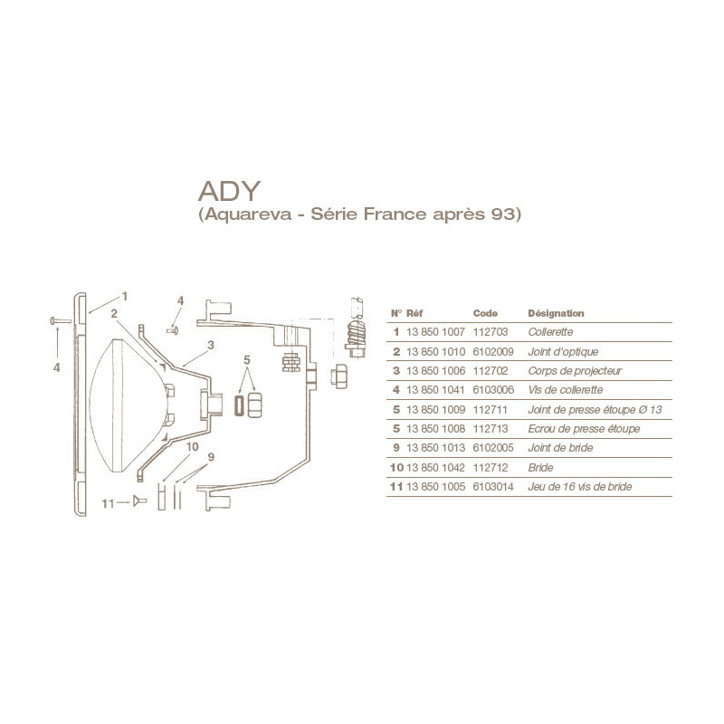 Collerette de projecteur ADY (Aquareva série France après 93).