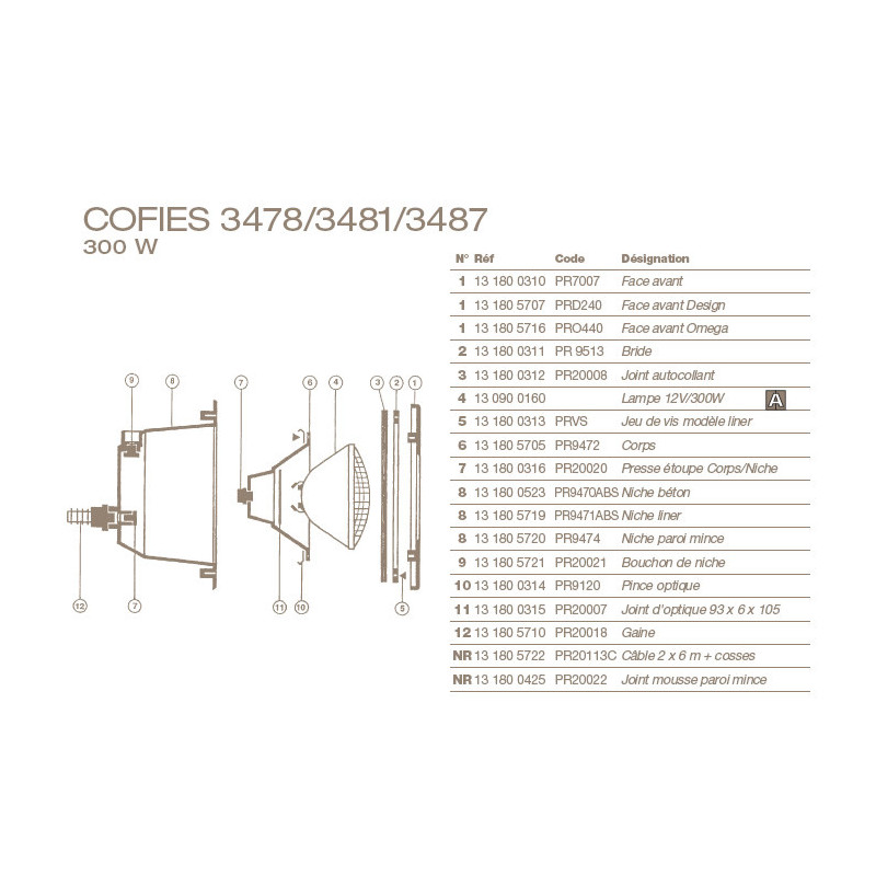 Câble 2 x 6m + cosses pour projecteur COFIES Premium, Design et Omega 300W.