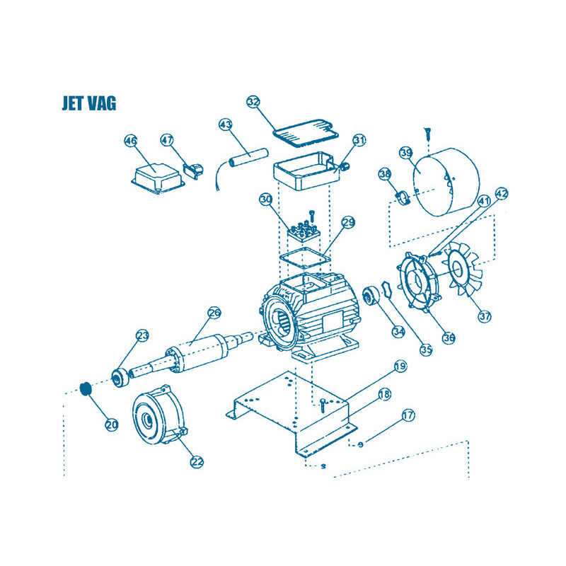 JET VAG - Nage à Contre courant - Moteur Partie Arrière - Arbre et rotor pompe 4CV tri.